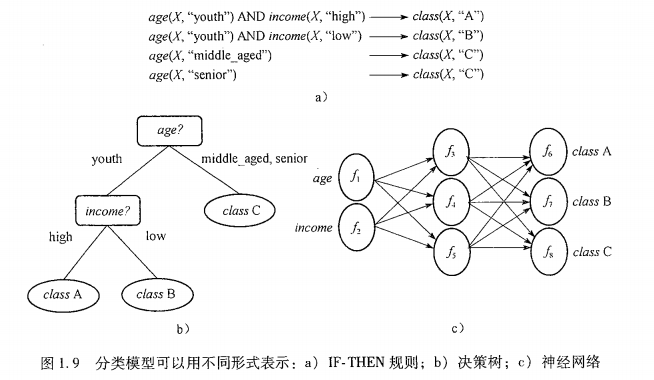 - 神经网络:是一组类似于神经元的处理单元,单元之间加权连接。还有许多构造分类模型的其他方法,如朴素贝叶斯分类、支持向量机和K最近邻分类。