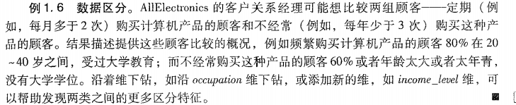 除上述数据类型外,还有时间相关或序列数据、数据流、空间数据、工程设计数据、超文本和多媒体数据、图和网状数据和万维网。这样的数据需要复杂的机制,以便有效得存储、检索和更新大量复杂的数据,但是它们也为数据挖掘提供了肥沃的土壤,提出了挑战性的研究和实现问题。