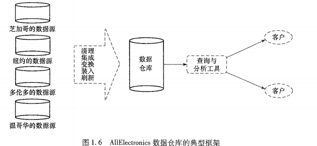 数据仓库是一个从多个数据源收集的信息存储库,存放在一致的模式下,并且通常驻留在单个站点上。数据仓库通过数据清理、数据变化、数据集成、数据装入和定期数据刷新来构造。
