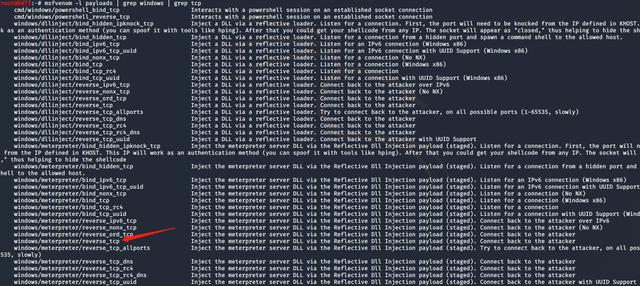 msfvenom -l payloads | grep windows | grep tcp