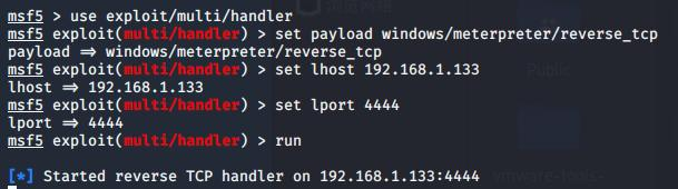 3、设置监听,set lhost 192.168.1.133
