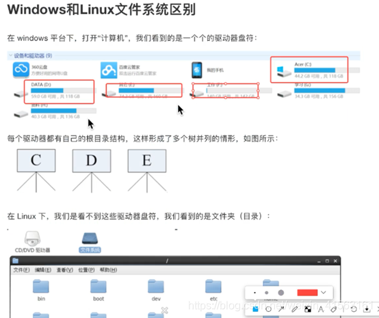 /:根⽬录,⼀般根⽬录下只存放⽬录,在Linux下有且只有⼀个根⽬录。所有的东⻄都是从这⾥开始。当你在终端⾥输⼊“/home”,你其实是在告诉电脑,先从/(根⽬录)开始,再进⼊到home⽬录。