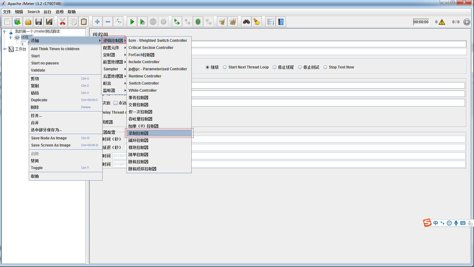 建立线程组,以及录制控制器(录制控制器是必须的,不然会影响到下一步)