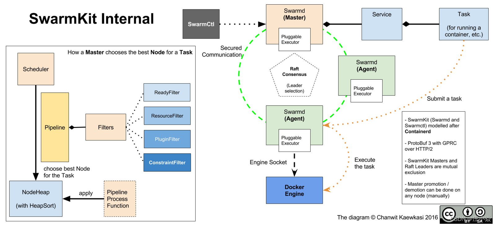SwarmKit 是一个分布式集群调度平台,作为docker 一个新的集群调度开源项目,它大量借鉴了 Kubernetes 和 Apache Mesos 的优秀概念和最佳实践,通过内嵌到 docker daemon 中实现对开发用户的引入。实际上它可以被看做 Docker Swarm 的2.0版本。目前业界云原生应用基金会并没有收录此集群方案,所以开发者在选型时会慎重考虑。
