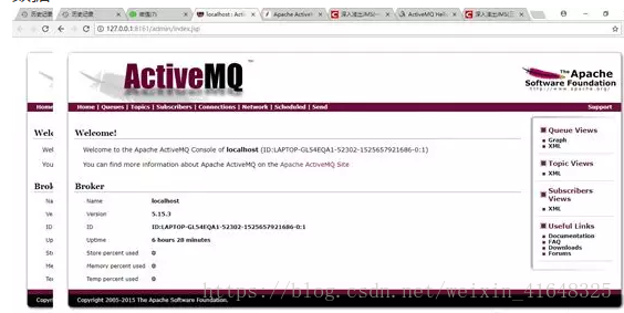 安装完之后访问 http://127.0.0.1:8161/admin/index.jsp 可以看到各种统计类和监控数据