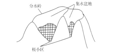 MSER算法是在2002提出来的,主要是基于分水岭的思想进行检测。分水岭算法思想来源于地形学,将图像当作自然地貌,图像中每一个像素的灰度值表示该点的海拔高度,每一个局部极小值及区域称为集水盆地,两个集水盆地之间的边界则为分水岭,如下图: