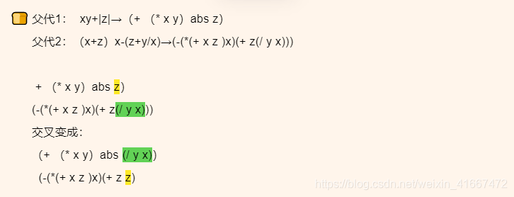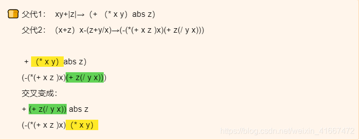 了解该算法后,我们就能发现s-表达式和子树之间一一对应,那么就可以直接对LIsp计算机程序进行交叉和变异。