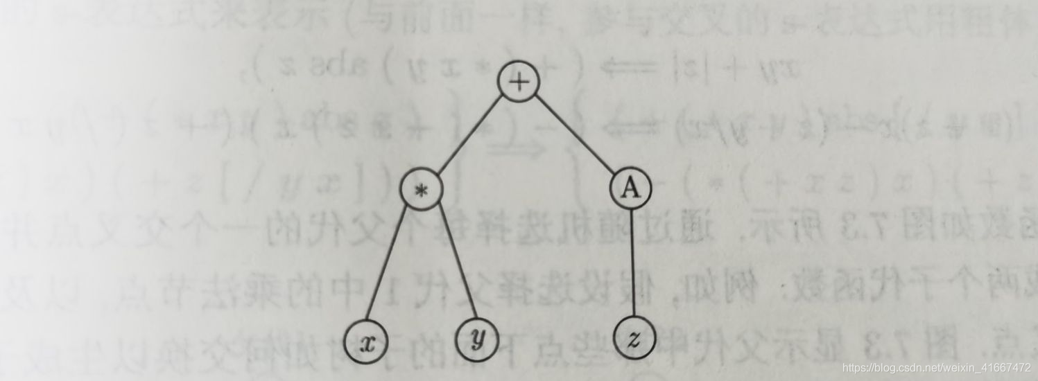 注:该图为函数xy+|z|的语法树,它由s-表达式(+(* x y)(abs z))表示,节点“A”表示绝对值算子