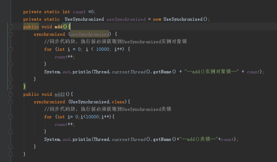 修饰静态方法,这个就和代码块中使用类锁一样,因为synchronized修饰在静态方法上,所以它实质是等于代码块中使用当前这个类的class,不管你一个类有多少个实例对象,你只有一个class,类锁是唯一的就不会出现多线程同时执行方法的现象。