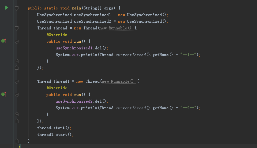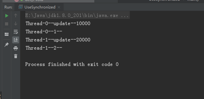 下面我们使用一个初始化好的一个实例对象作为对象锁。(useSynchronized)