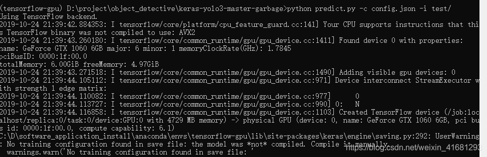 这个警告可以不用管它,预测的图片也会出现在output文件夹下面。