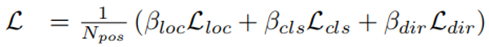 其中Npos是阳性锚点的数量,βloc = 2, βcls = 1, βdir = 0.2。