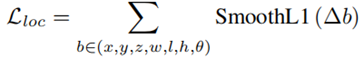 这里xgt和xa代表地面真值和锚点框,并且da=((wa)2+(la)2)1/2。总的定位损失为: