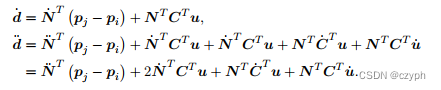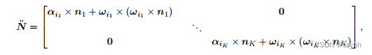 这里面与上面不一样的是N的导数,但是N表示的仅仅是一个方向,所以他的导数就可以用角速度叉乘以自身方向来求得。