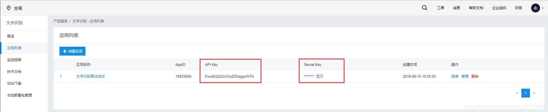 3. 调用API进行文字识别,目前通用文字识别可免费试用,每天限调用5W次。