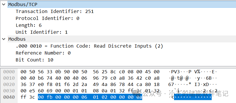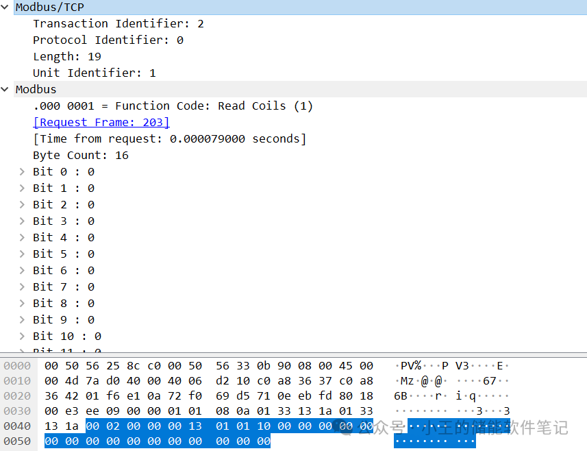 响应:MBAP 功能码 数据长度 数据(长度:9+ceil(数量/8))