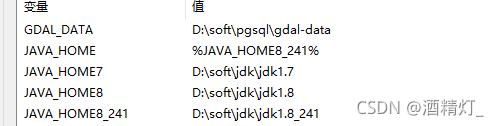 首先我们对三个路径,分别配置了三个单独的环境变量。分别是JAVA_HOME7、JAVA_HOME8、JAVA_HOME8_241。如下所示