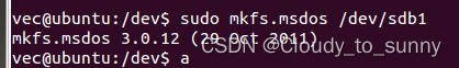 sudo mkfs.msdos /dev/sdX //X要根据下面的df -h命令查看并修改