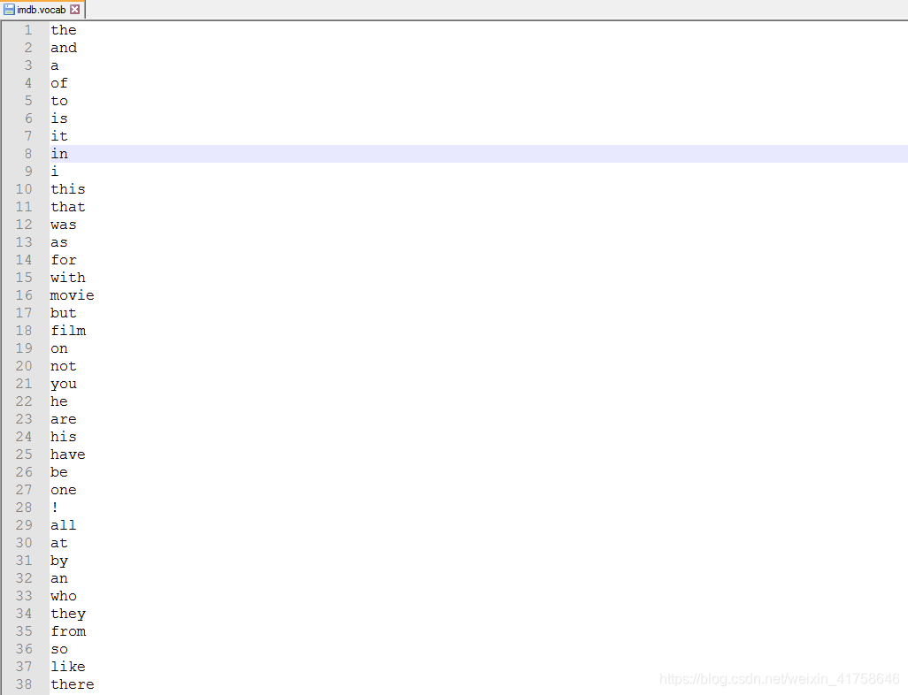 可以在下载的数据中找到一个imdb.vocab文件,那就是字典。