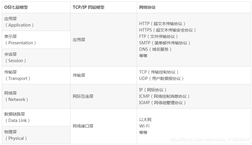 | OSI参考模型 | 应用层 | 表示层 | 会话层 | 传输层 | 网络层 | 数据链路层 | 物理层 |