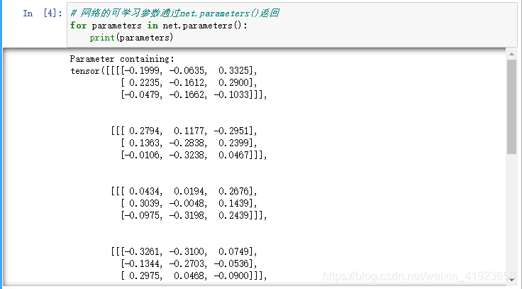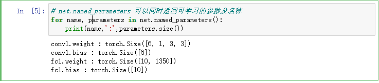 net.named_parameters 可以同时返回可学习的参数及名称。