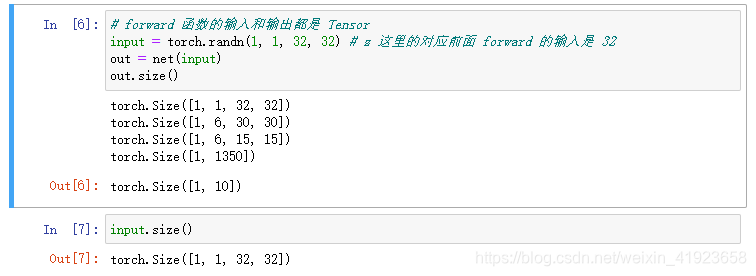 也就是说,就算我们输入一个样本,也会对样本进行分批,所以,所有的输入都会增加一个维度,我们对比下刚才的nn中定义为3维,但是我们人工创建时多增加了一个维度,变为了4 维,最前面的 1 即为 batch-size。