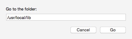 6、键入”/"(或者用快捷键Command+Shift+G),弹出前往窗口,输入OpenCv的库路径。