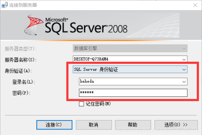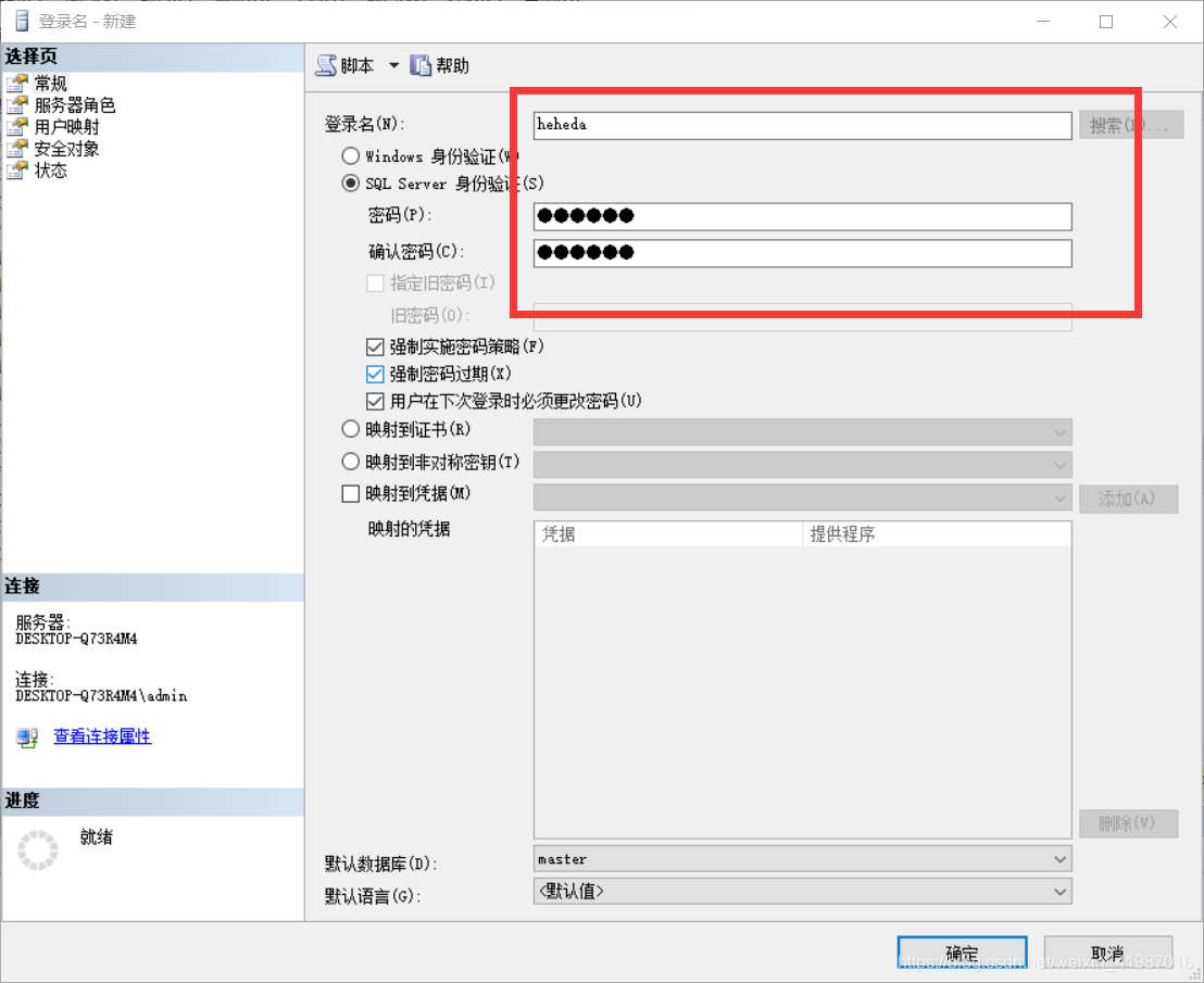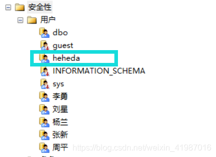 2.添加登录用户heheda,在安全性下面的文件夹新建登录名