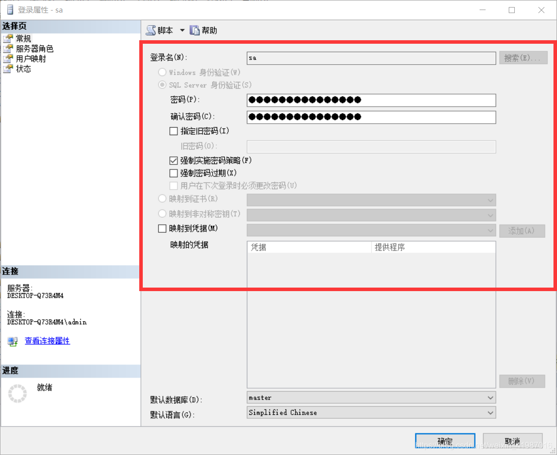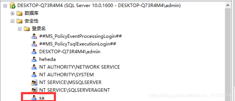 4.查看sa用户的属性(其实sa用户是sql server自带的用户)