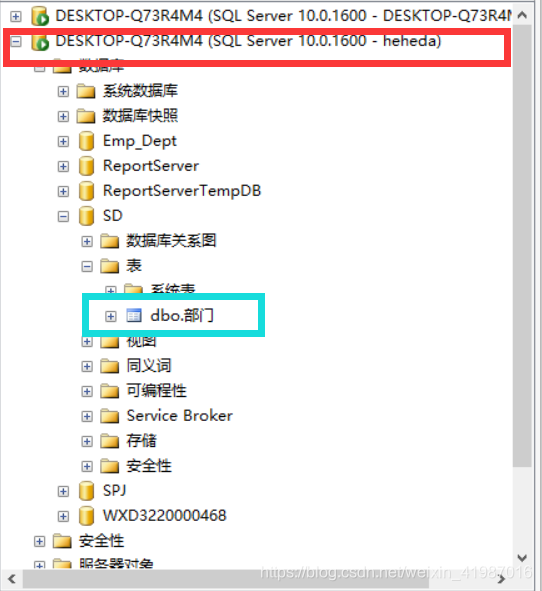 11.查看执行效果,此时heheda连接可以访问SD数据库,并且查看部门这张表。