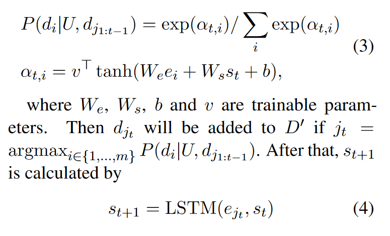 上述种的d1,d2等等就是document中一个一个句子,从上图可以看出本质上是通过lstm 设计了一个selection网筛选出知识D’,同时通过一些sim function也会选出一个伪知识 ,这里的D’就是网络选出来的,而