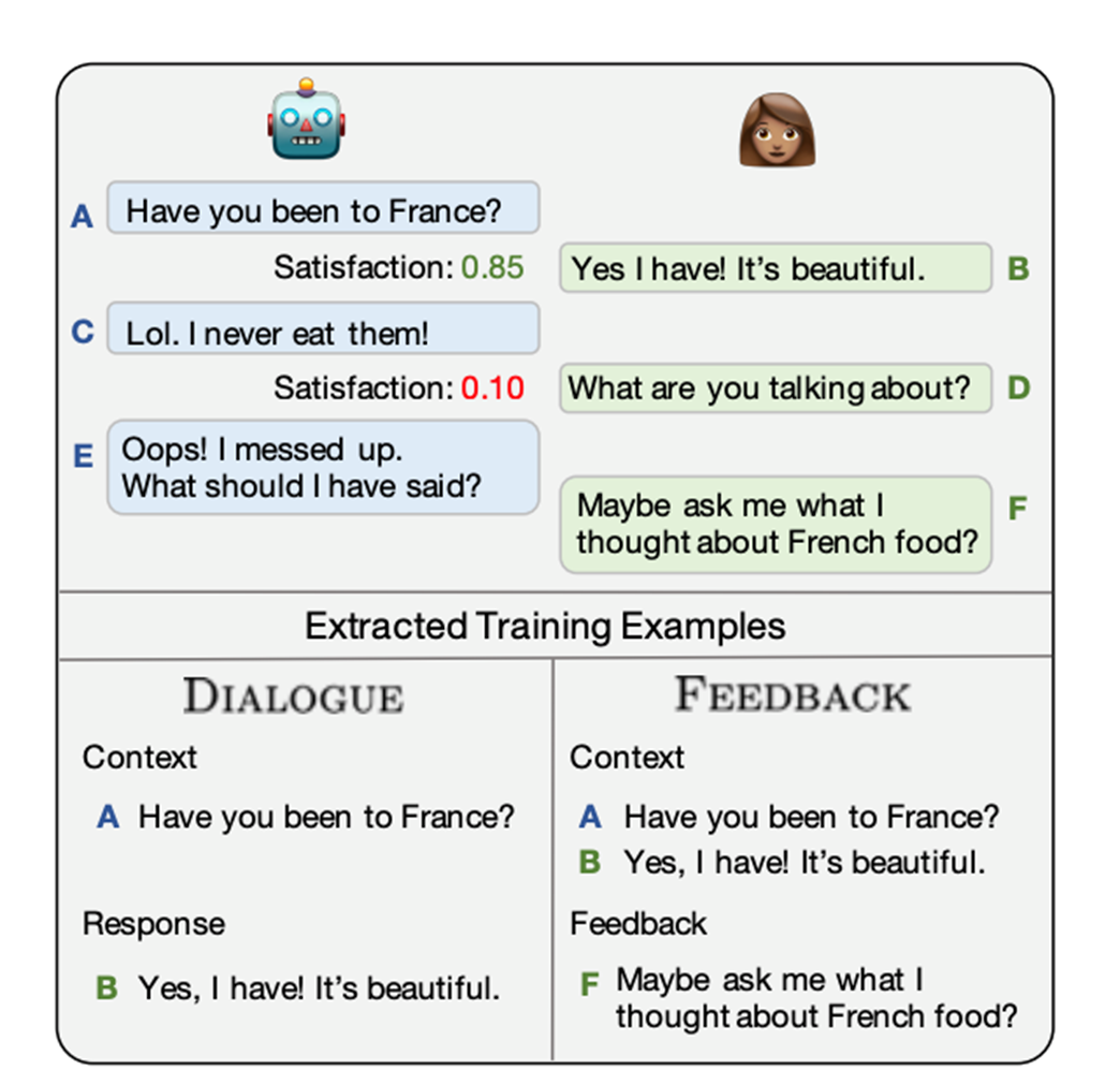 首其判断对方(人类/human)对当前的response是否满意,满意的话,将这部分对话扩充为新的语料,如果不满意,会进一步询问应该或者期望回答什么,然后同样将其作为训练语料。