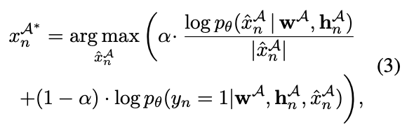 mutual persona perception这里应该就是本文要讨论的重点了,即language style和discourse coherence其实更多的考虑是想人话,但是没有充分理解说话者之间的交互即mutual persona perception更多的是想cover住一个长期的对话目标,这里作者举了个例子,假设B问A:“您的兴趣是什么呢?”,那么A接下来大概率会回答自己的兴趣爱好,同时可以看到不仅仅是A的回答,其实B的初始化问题对A的persona推断也是有信息增益的,于是这里使用以下公式作为奖励: