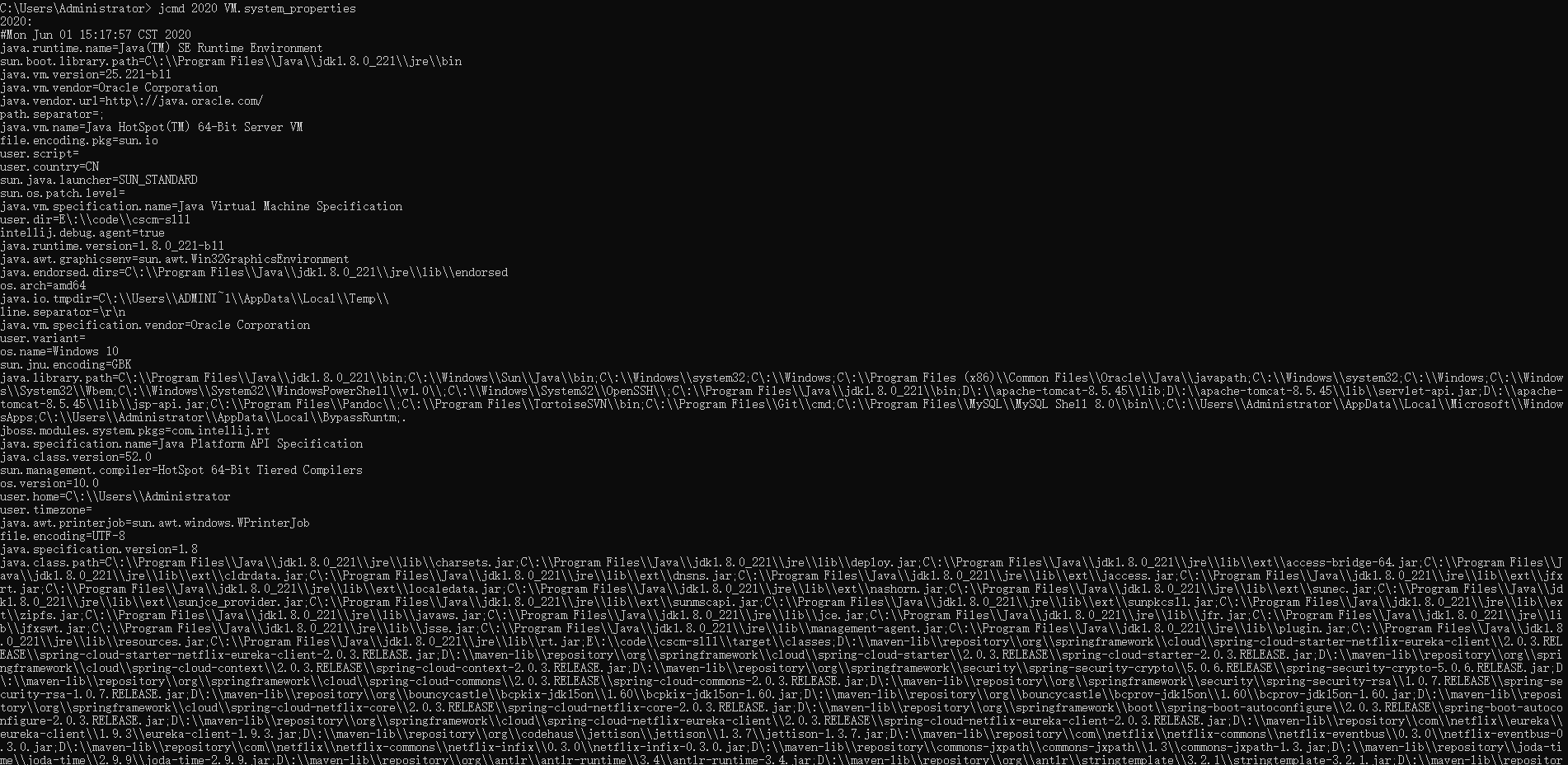 4.输入 jcmd 2020 VM.system_properties 查看运行时环境变量