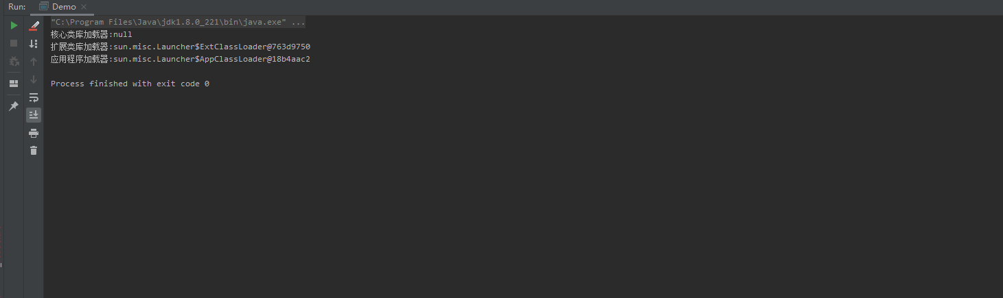 System.out.println("应用程序加载器:" + Demo.class.getClassLoader());