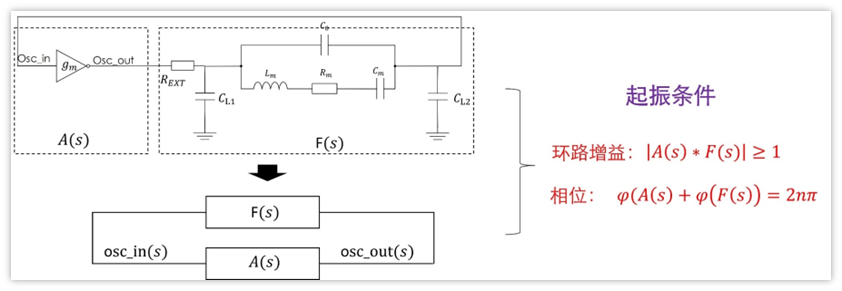 上图中将反相放大器的传递函数用A(s)表示,晶振及其匹配电路打包一起,其传递函数看作F(s)。