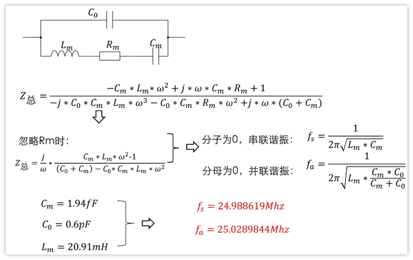 理论上说,总阻抗是个复数,我们可以把它化简成实部和虚部,虚部大于0时,即表示晶振呈感性。不过这也太费劲,还是直接搞一个实际的晶振参数看看。