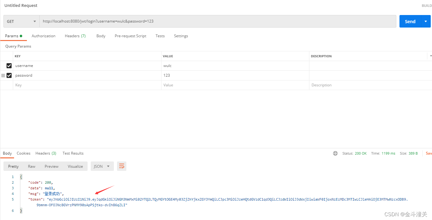 访问/jwt/login实现用户登录,并获取token。