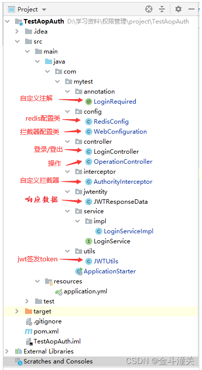 - redis用于存放签发好的token并设置过期时间,以及在注销的时候清空token。