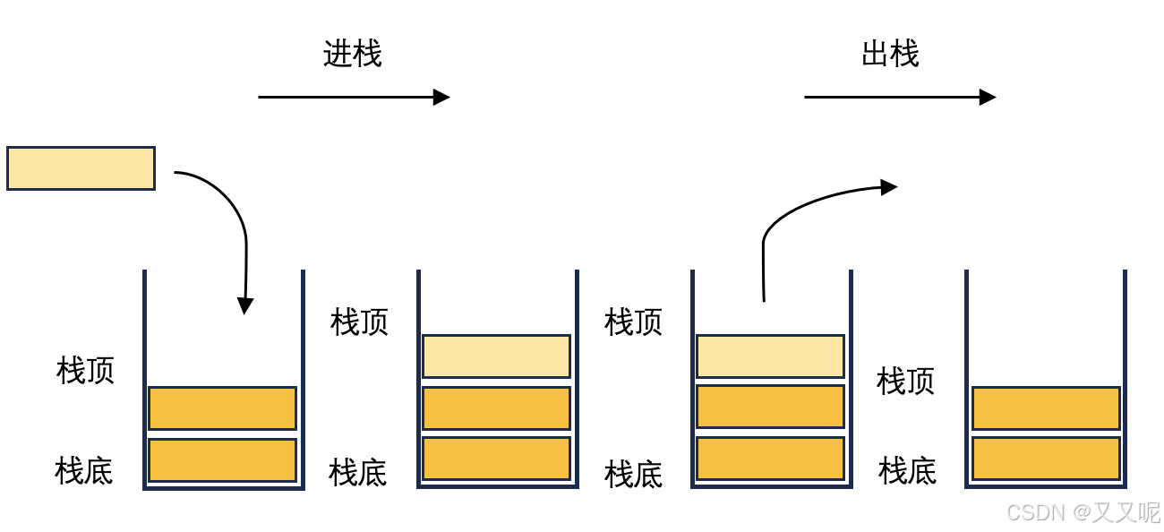 - 在栈里面,新元素都接近栈顶,旧元素都接近栈底