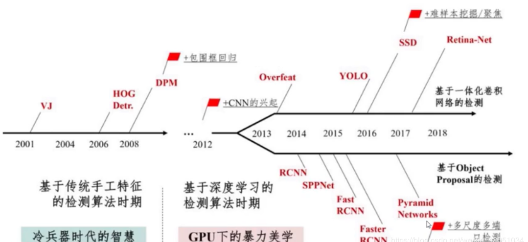 目标检测发展历程 1.发展历程2.算法流程3. 传统方法4.深度学习方法 1.发展历程 2.算法流程 3. 传统方法 Viola-IonesHOG+SVMDPM······ 4.深度学习方法 One-stage(YOLO和SSD系列)Two-stage(Faster RCNN系列) One-stage VS Two-stage