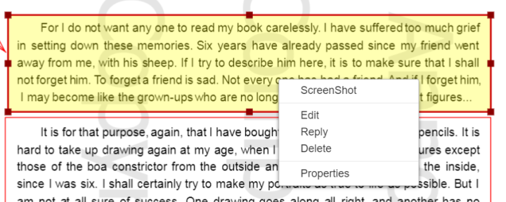 当我们添加了足够多的注释时,或许会希望看到更干净的阅读页面,工具栏内有一键隐藏和显示所有注释的按钮,可以轻松满足需求。我们也可以针对某个注释进行操作,只需要选中注释并右键点击即可进行相应的操作。