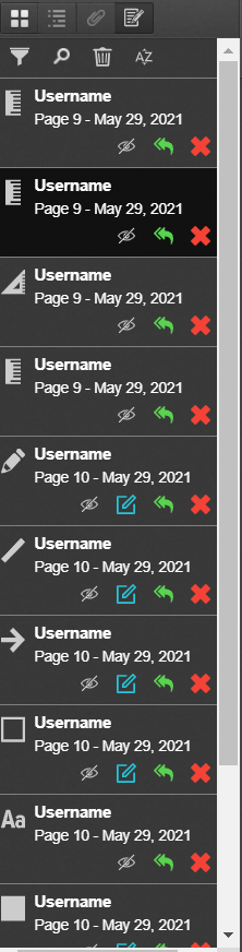 左侧菜单栏显示PDF页面列表,同时也显示了所有注释的列表,可以在此处对相应的注释进行操作: