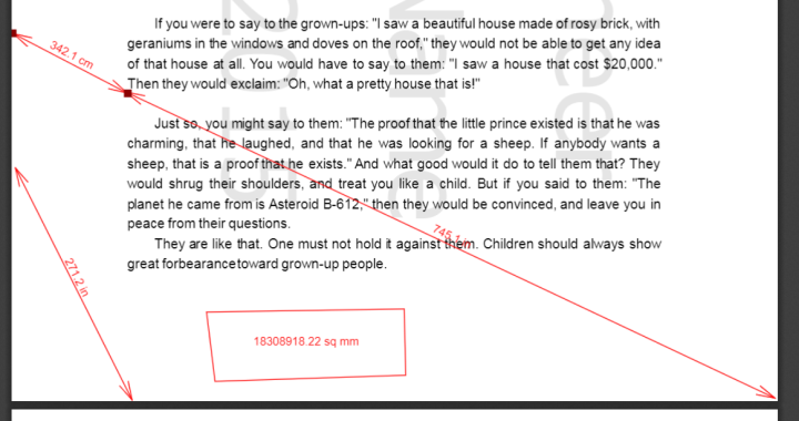 支持如上图中所示的画线、直线,添加感想,重点内容高亮显示等等各种基本的注释操作,同时还有测量尺可以测量长度以及面积,支持英寸厘米毫米等测量单位。