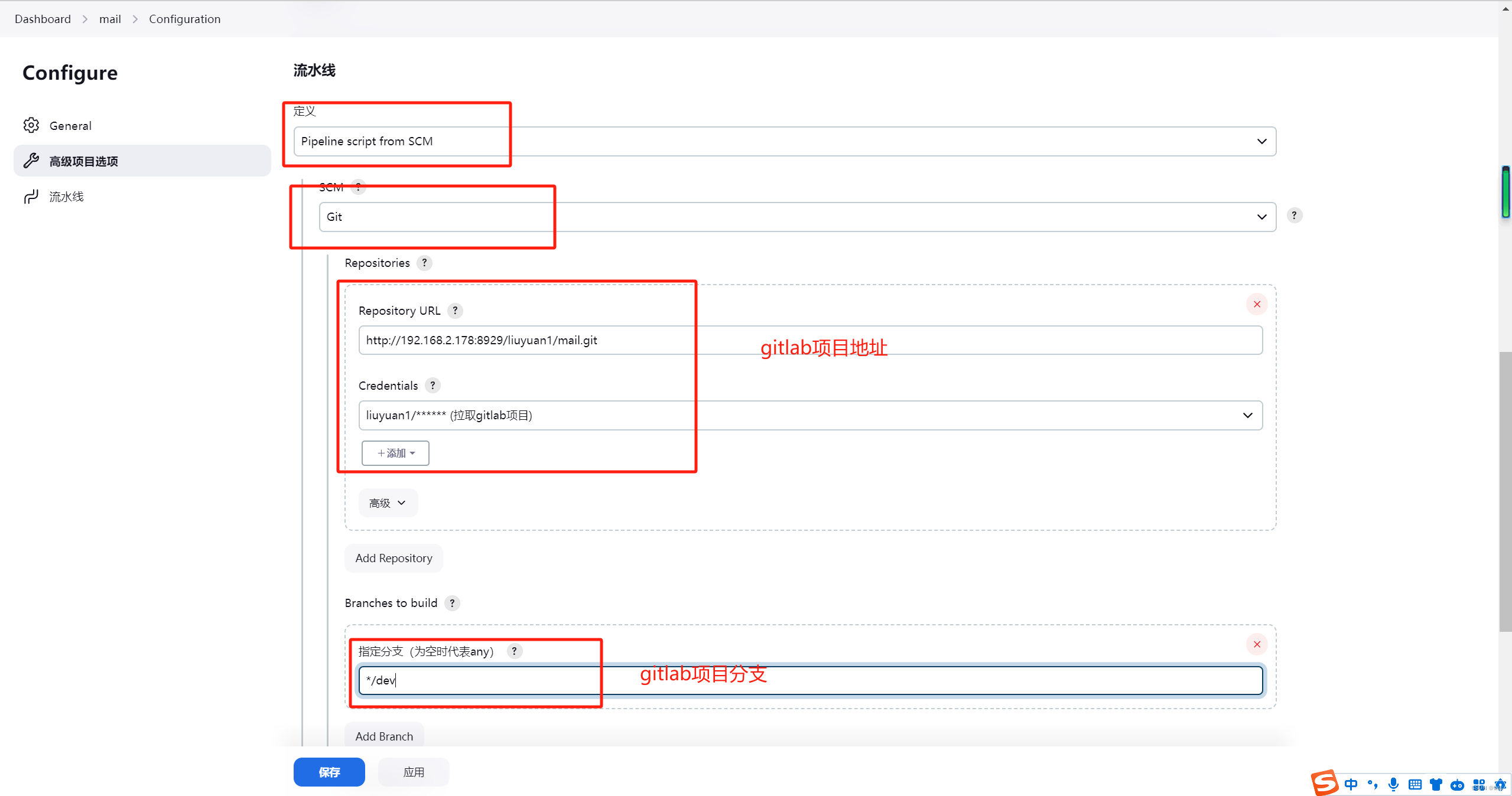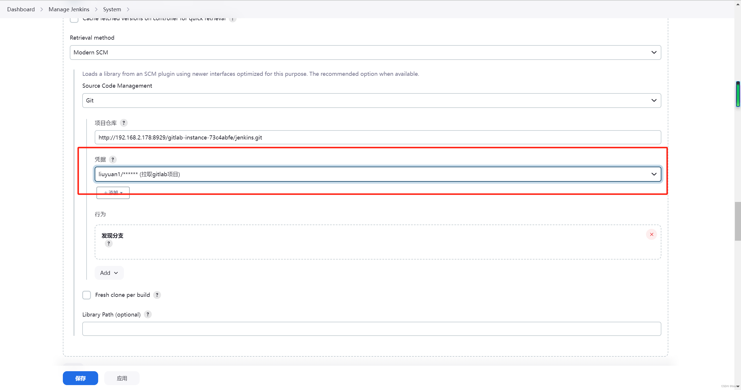 添加凭据,供jenkins拉取gitlab的项目,用户名是gitlab中存在的用户即可,密码是对应用户的密码