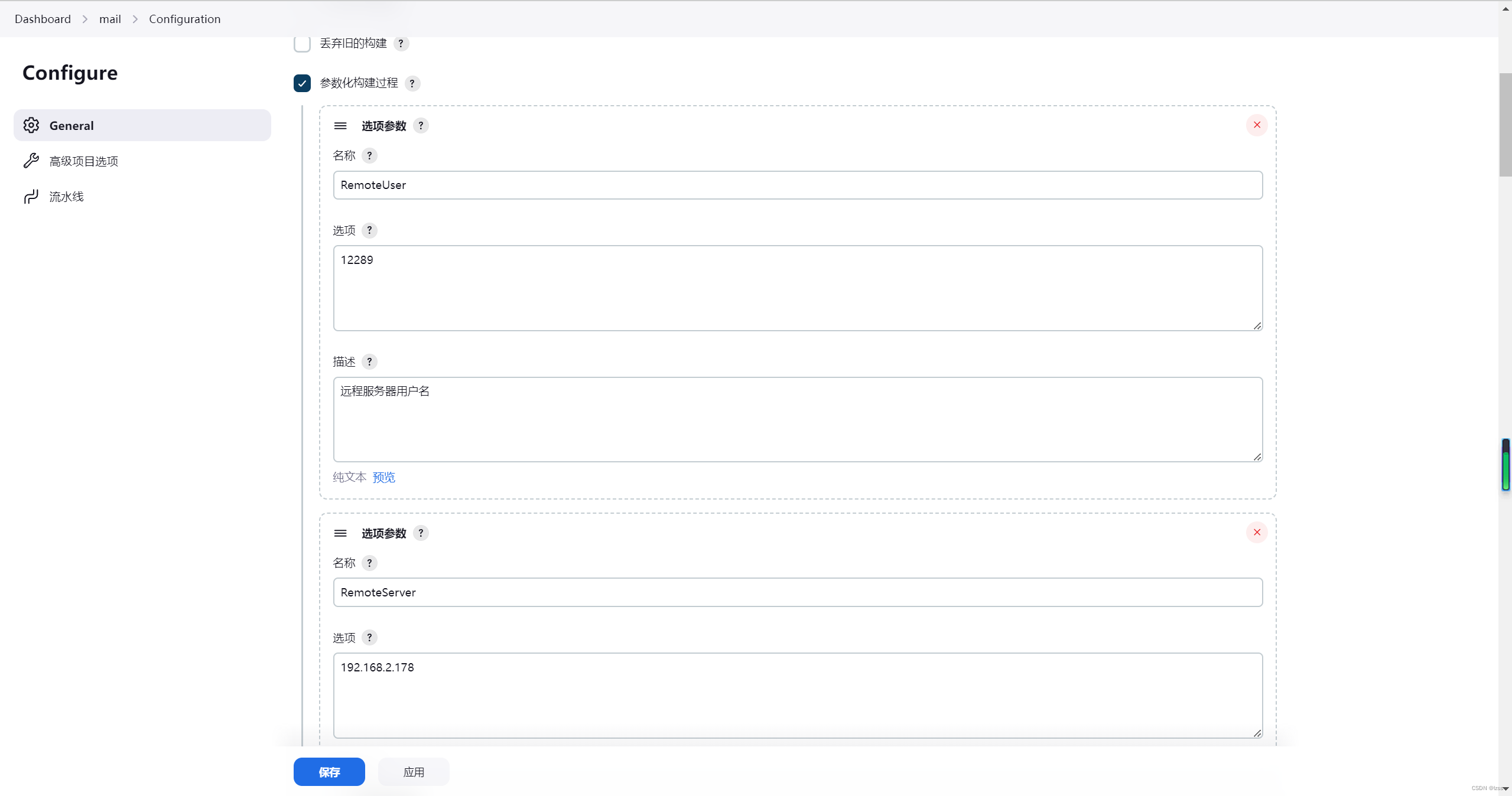 由于没有远程主机可使用,现在使用jenkins所在的容器去连接宿主机进行部署,步骤是一样的,如果需要改别的服务器,只需把ip地址一换就可以,其它步骤是一样的。