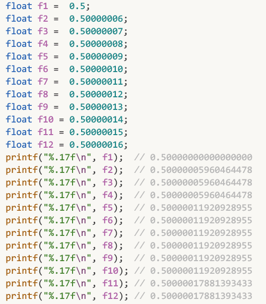 以0.5 ~ 1这个范围为例, 此时的间隔是间隔是5.96046e-8, 约等于0.0000 0006