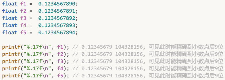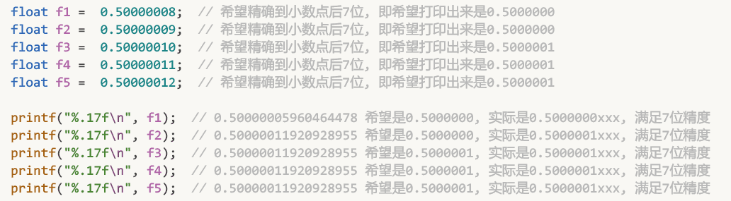 相信读到这里, 大家都能找出这种理解的错误之处了: 32位浮点数的精确度是7位有效数, 大体来说, 这7位有效数, 指的是 整数 + 小数一共7位, 而不是说始终能精确到小数点后六位...