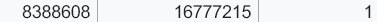在 8388608 ~ 16777215范围中, 两个蓝点间的间隔是1