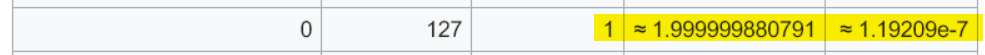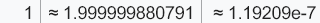 比如在1 ~ 2范围中, 两个蓝点间的间隔约是1.19209e-7
